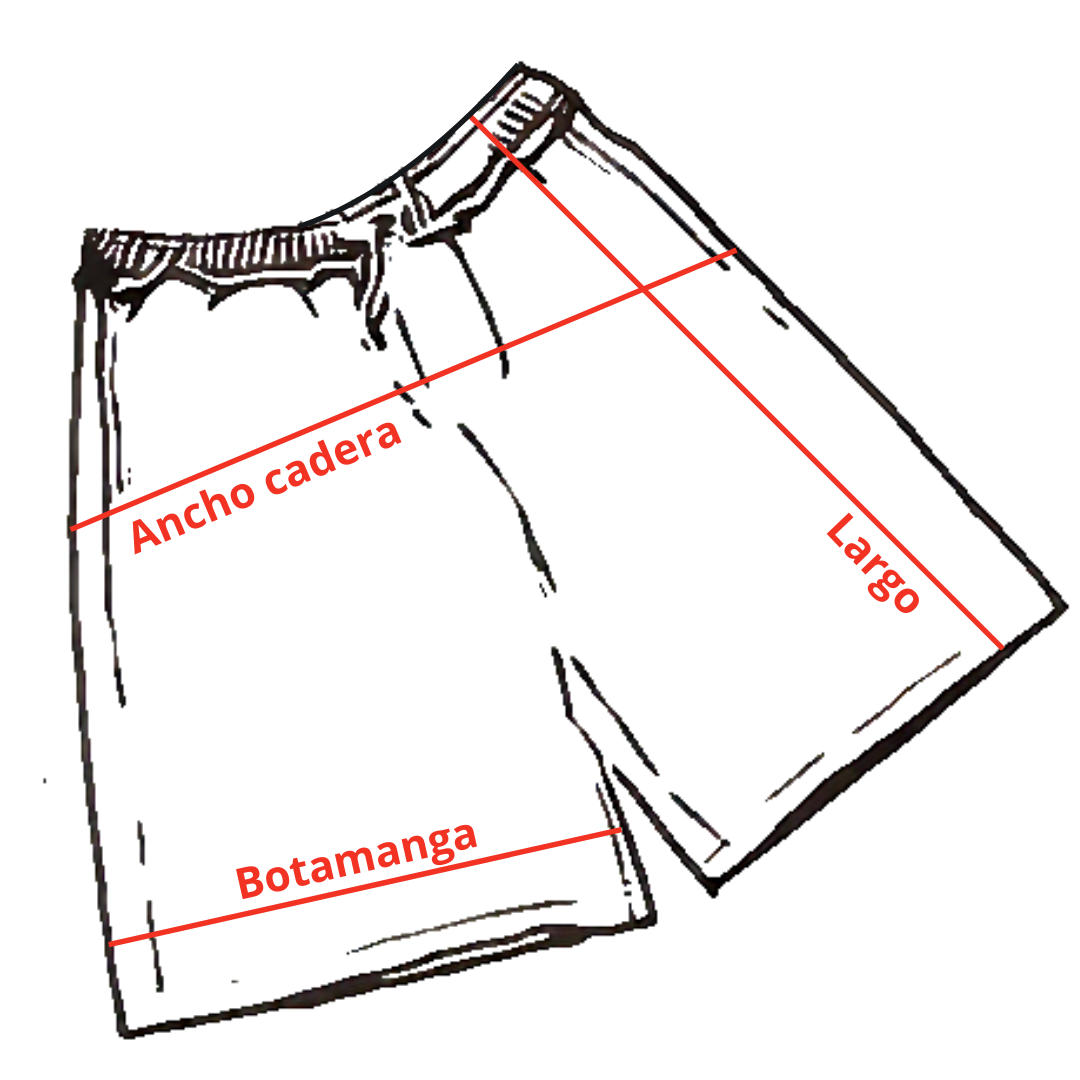 Posee un corte bien holgado, con un largo que finaliza por debajo de las rodillas, cordón en la cintura para su ajuste y bolsillos laterales.